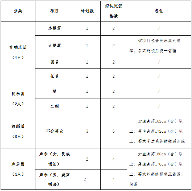 2.考生须有高中阶段参加艺术团活动一年以上或参加大型演出活动(含比赛)的经历。