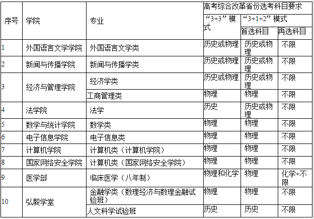对于实行高考综合改革的上海、浙江资格考生,高考成绩需达到相关最低录取控制参考分数线上30分,北京、天津、河北、辽宁、江苏、福建、山东、湖北、湖南、广东、重庆资格考生高考成绩需达到相关最低录取控制参考分数线上70分,海南资格考生高考成绩需达到相关最低录取控制参考分数线上110分。考生选考科目应满足填报专业的科目要求。
