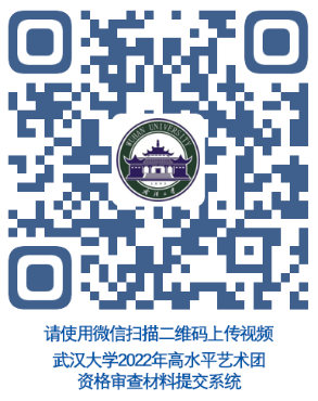 考生在教育部“阳光高考平台”报名完成后,需在2021年12月20日10:00至12月27日16:00期间上传音像资料。考生需将与报考项目相关的艺术特长制作成声音、图像清晰的MP4或AVI格式的音像资料,时长不超过10分钟,整个录制过程需保证真实性、原始性,不得切换镜头拍摄或进行后期编辑加工,不得出现任何与考生有关的个人信息;并将上述音像资料以“报名号+考试项目”的文件名上传至武汉大学2022年高水平艺术团资格审查材料提交系统(https://whu.gaokaobaoming.com,二维码附后)。未按要求完成报名、报名材料不符合要求、音像资料不能播放等情况,一律视作报名无效。
